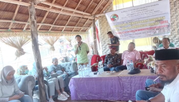 Koperasi Produsen Soar Pito Soar Pa Petuanan Kayeli melakukan sosialisasi penyusunan dokumen dengan mendatangkan Kabid Koprasi, Kabid Dinas Lingkungan Hidup (LH) Kabupaten Buru dan Konsultan dari Universitas Pattimura (UNPATI) Ambon.