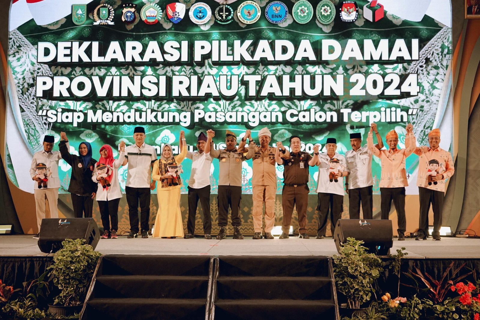 PEKANBARU (LA) – Penjabat (Pj) Walikota Pekanbaru, Risnandar Mahiwa S.STP M.Si, mewakili Sekretaris Daerah Kota (Sekdako) Pekanbaru, Indra Pomi Nasution ST M.Si, menghadiri acara Deklarasi Pemilu Damai Provinsi Riau Tahun 2024.