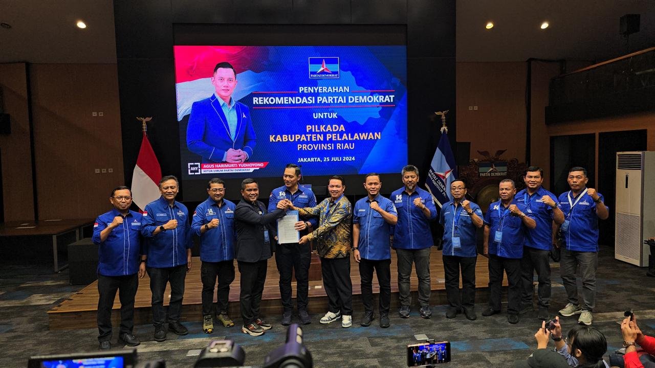 Pelalawan (literasiaktual.com) – DPP Demokrat resmi menyerahkan rekomendasi partai kepada pasangan yang diusung H.Zukri – Husni Tamrin Bakal Calon Bupati dan Wakil Bupati Pelalawan di Pilkada serentak 2024, Kamis, TANGGAL (25/07/2024)