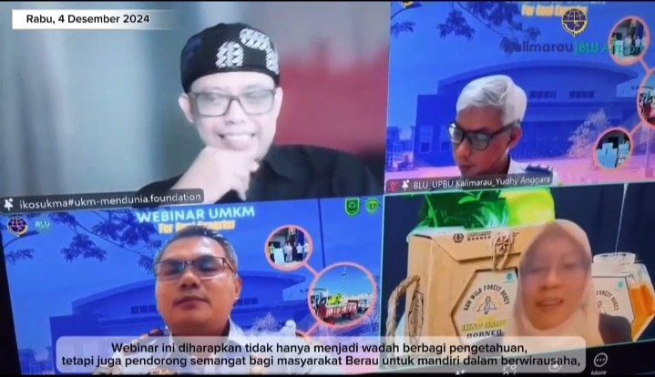Webinar secara resmi dibuka oleh Sekretaris Daerah Kabupaten Berau, Bapak Muhammad Said. Dalam sambutannya, beliau menegaskan bahwa Pemerintah Daerah akan terus mendukung pelaku usaha mikro, kecil, dan menengah (UMKM) di Kabupaten Berau agar mampu tumbuh dan berkembang, terutama melalui strategi branding produk unggulan Berau ke pasar internasional. “Potensi besar Berau dalam sektor perikanan, perkebunan, dan pertanian perlu terus dioptimalkan agar dapat bersaing di kancah global,” ungkapnya.