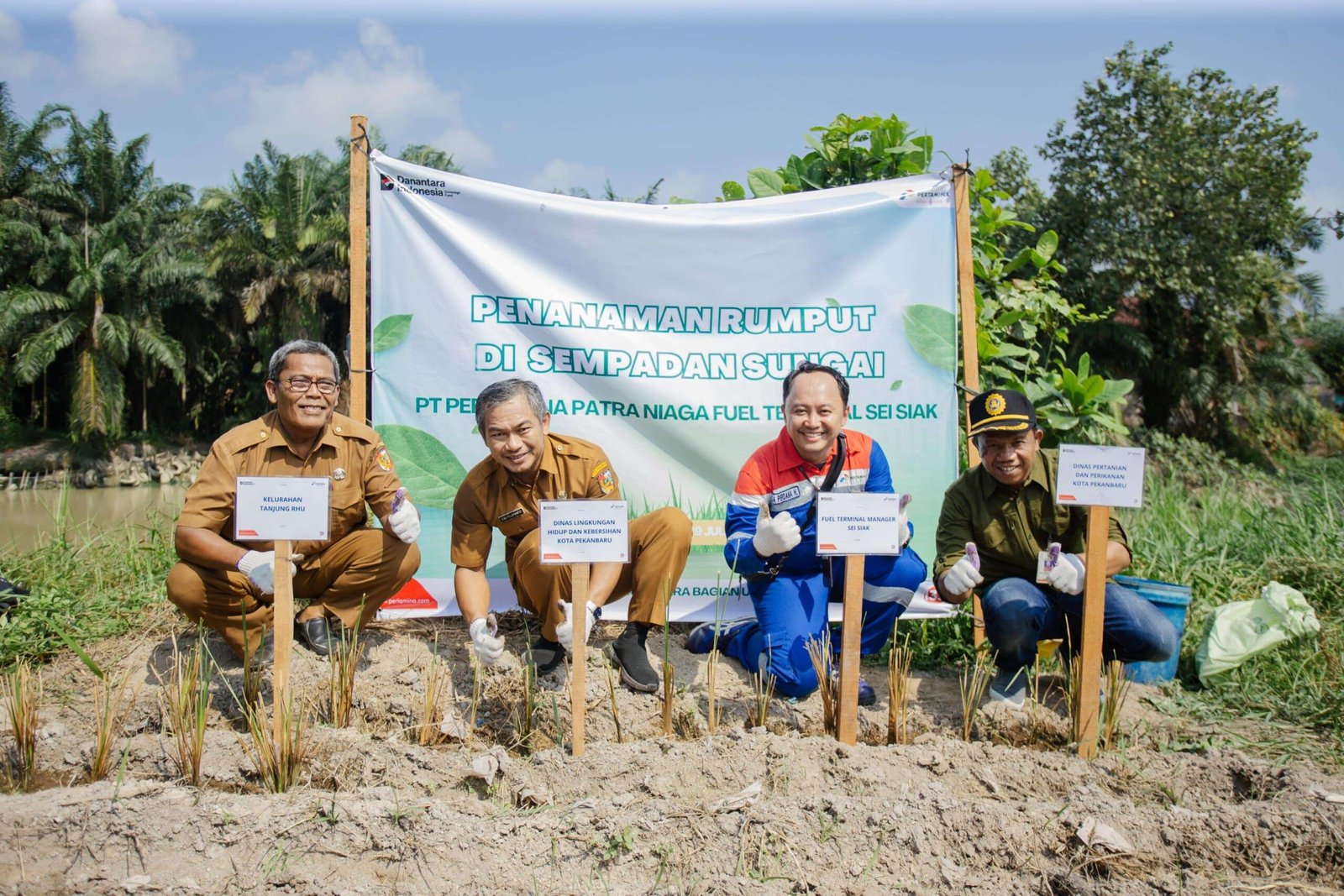 Pekanbaru, (LA) – Pertamina Patra Niaga Regional Sumbagut melalui Fuel Terminal (FT) Sei Siak meluncurkan program Siak Jaga Alam, Masyarakat Berdaya (SEJAMBA) dengan aksi tanam rumput vetiver (akar wangi) di sempadan Sungai Siak, Kelurahan Tanjung Rhu, Kecamatan Limapuluh. Langkah ini menyasar dua hal sekaligus: menahan abrasi yang rata-rata mencapai ±1 meter/tahun dan menguatkan ekonomi warga yang bergantung pada hasil sungai—dari budidaya cacing sutra, pertanian, hingga peternakan.