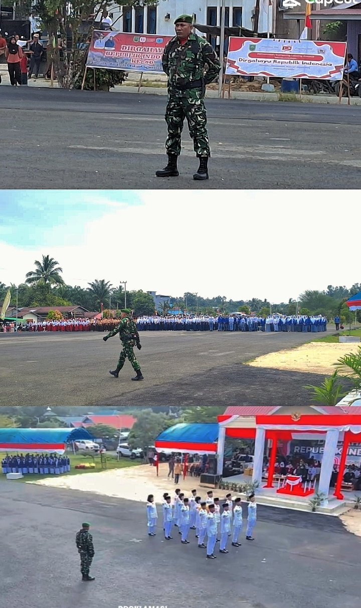 Upacara pengibaran bendera merah putih dipimpin oleh Inspektur Upacara Kapten Arm. Joko S, dengan Komandan Upacara Serka Wisandy dari Koramil 0902 – 10/Batu Putih.
