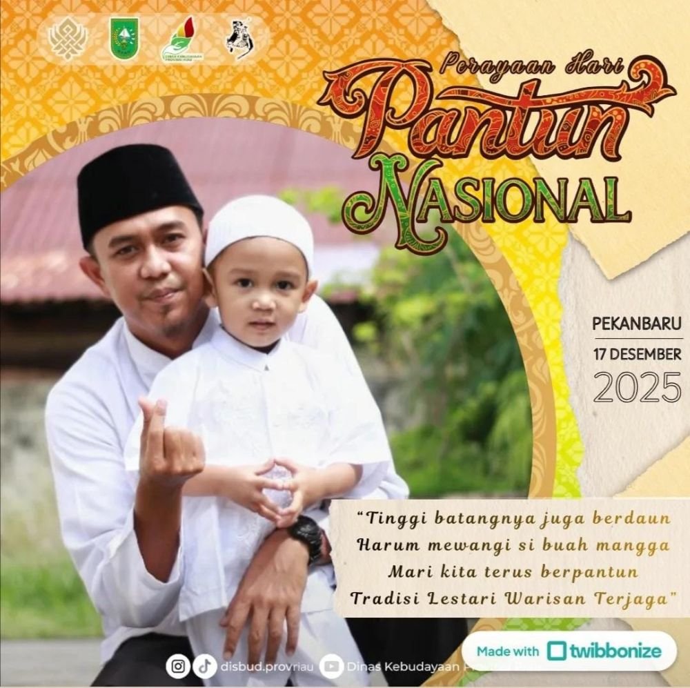 PEKANBARU (LA) – Dalam rangka menyemarakkan peringatan Hari Pantun Nasional 2025, Dinas Kebudayaan (Disbud) Provinsi Riau meluncurkan twibbon resmi yang dapat diunduh dan digunakan masyarakat secara gratis melalui platform digital.