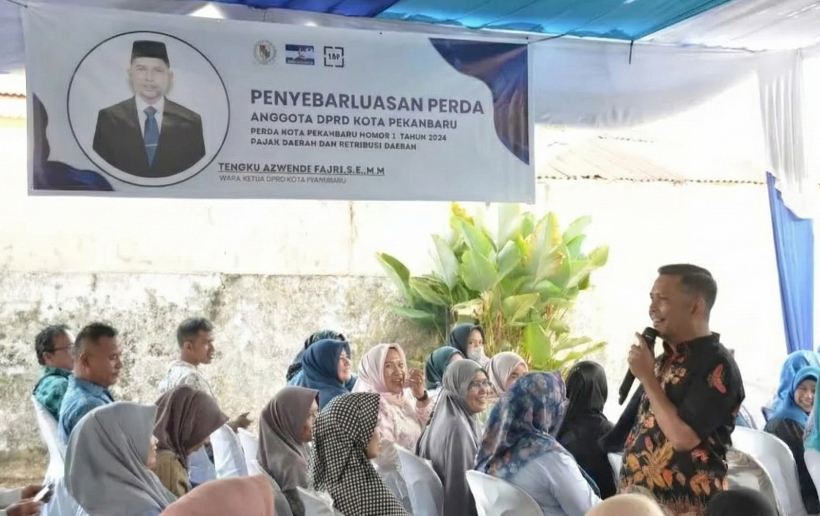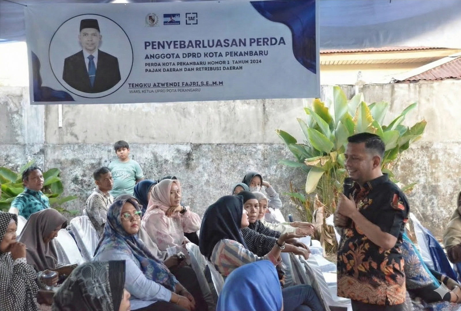 PEKANBARU, (LA) – Wakil Ketua DPRD Kota Pekanbaru, Tengku Azwendi Fajri, S.E., kembali hadir di tengah masyarakat untuk menjalankan fungsi legislasi dan edukasi publik. Bertempat di Jalan Kapling Amilin, Kelurahan Tangkerang Utara, Kecamatan Bukit Raya, Kamis (27/11), Azwendi mengupas tuntas substansi Peraturan Daerah (Perda) Nomor 1 Tahun 2024 tentang Pajak dan Retribusi Daerah.