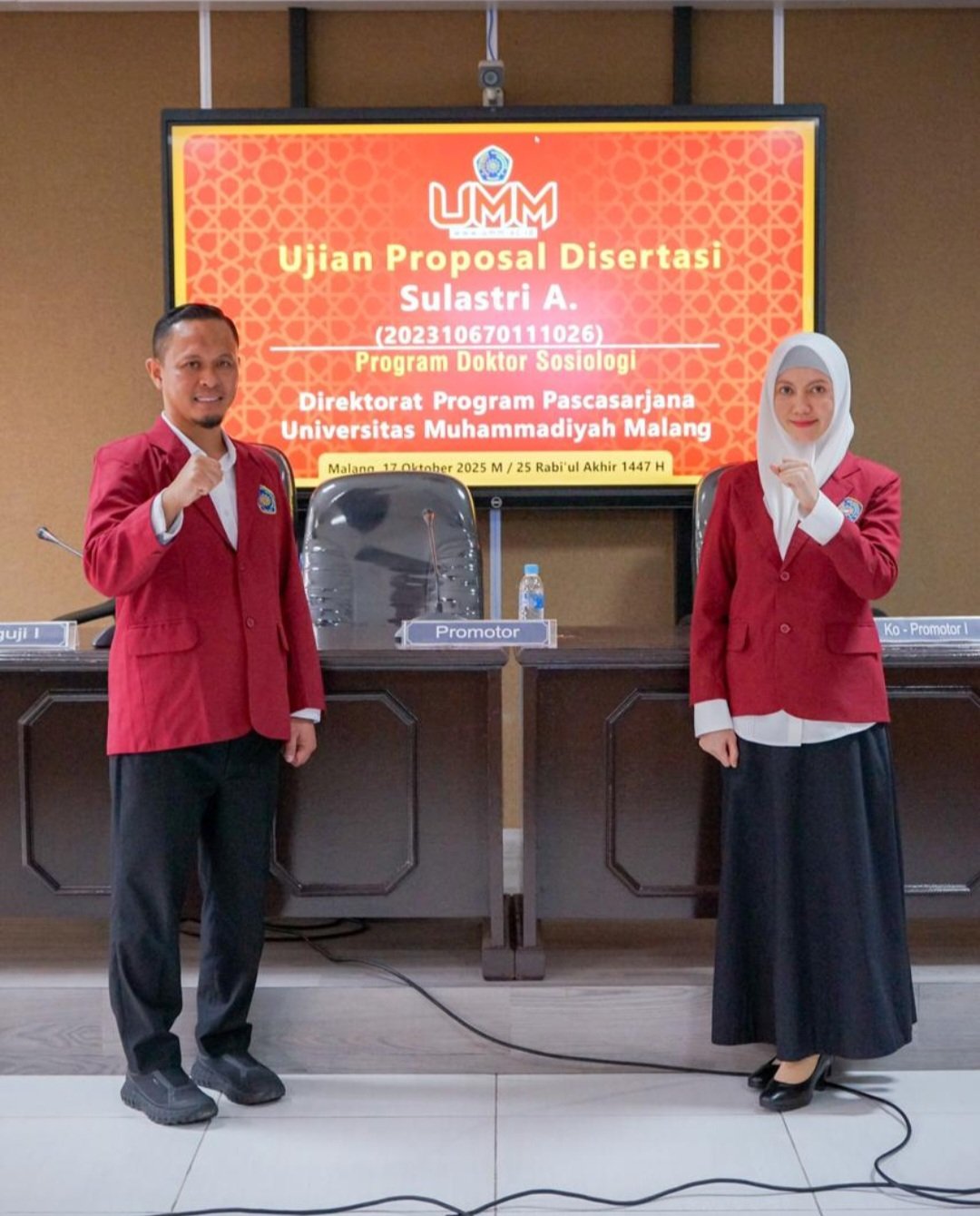 MALANG, (LA) – Wali Kota Pekanbaru, H. Agung Nugroho, SE, MM, bersama sang istri, Sulastri Agung, yang juga Ketua TP PKK Kota Pekanbaru, sukses menyelesaikan ujian proposal disertasi program doktor (S3) di Universitas Muhammadiyah Malang (UMM) pada Jumat (17/10/2025) dengan hasil memuaskan.