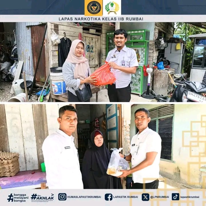 Pekanbaru, (LA) – Lembaga Pemasyarakatan (Lapas) Narkotika Kelas IIB Rumbai menunjukkan komitmennya dalam mendukung program akselerasi Menteri Imigrasi dan Pemasyarakatan melalui penyelenggaraan kegiatan bakti sosial. Acara sosial ini dilaksanakan pada Rabu (22/10/2025) dengan sasaran utama pemberian bantuan langsung kepada keluarga Warga Binaan Pemasyarakatan (WBP) dan masyarakat yang tinggal di sekitar lingkungan Lapas.