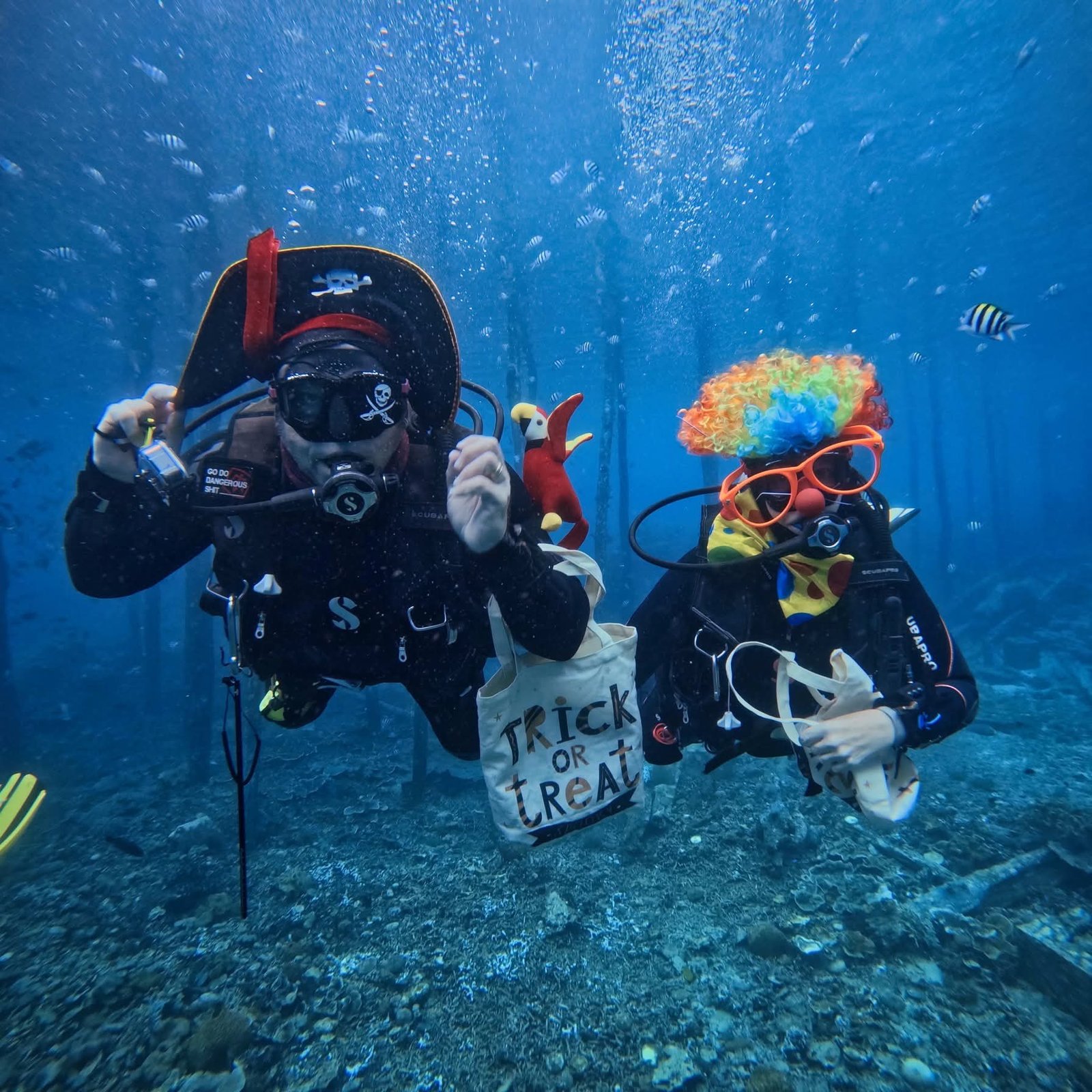 “Biasanya turis rayakan Halloween di dek kapal, tapi kali ini mereka ingin sesuatu yang beda. Bawah laut Raja Ampat jadi panggungnya,” ujarnya sambil tersenyum.