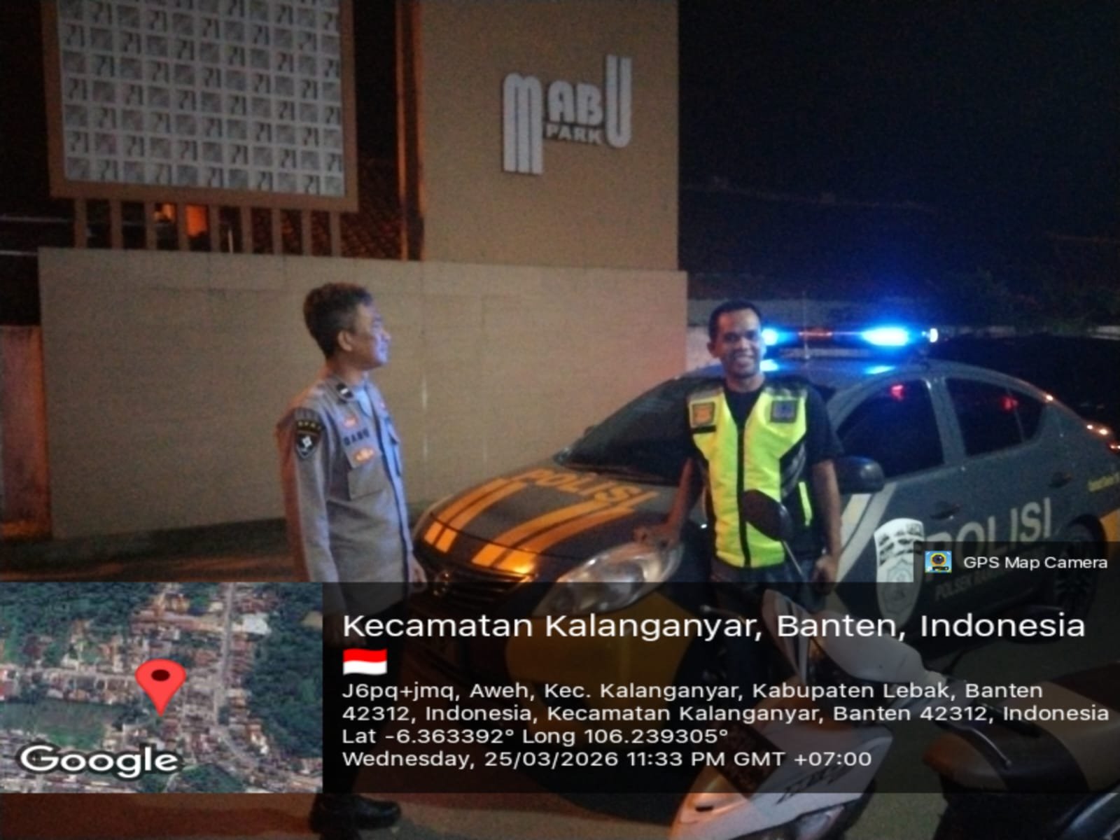 Literasiaktual.com– Anggota Polsek Rangkasbitung,AIPDA Danu Nugraha dan BRIPKA Nanag.H,, melaksanakan giat patroli dislogis ke Perumahan Mabu Park, temui Securty.