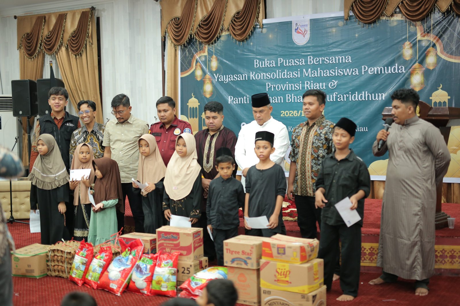 PEKANBARU (LA) – Yayasan Konsolidasi Mahasiswa Pemuda Provinsi Riau (Kompor Foundation) menggelar kegiatan buka puasa bersama dengan anak-anak Panti Asuhan Bhakti Mufariddhun pada Senin (9/3/2026). Kegiatan yang dilaksanakan di Rumah Dinas Ketua DPRD Provinsi Riau ini menjadi momentum mempererat silaturahmi bagi Kompor Foundation sekaligus menumbuhkan semangat kepedulian sosial di kalangan pemuda.