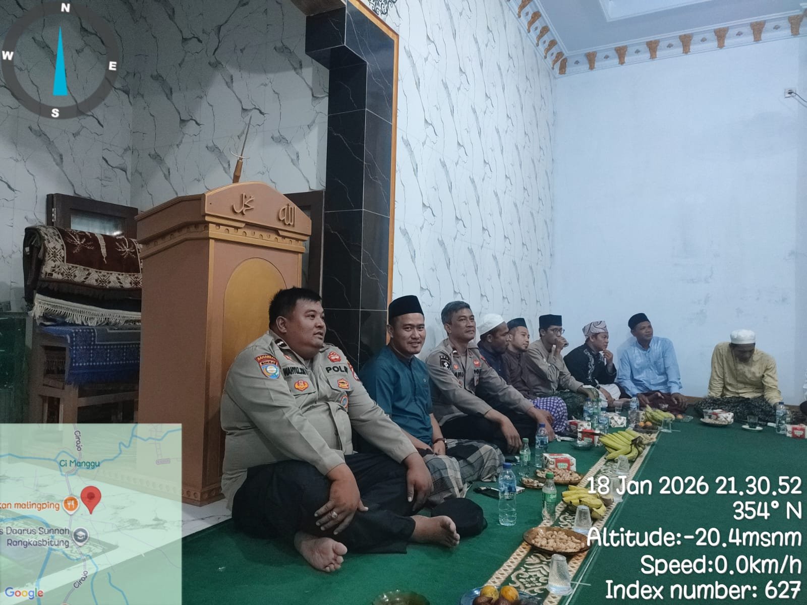 LEBAK,Banten.LiterasiAktual.com-Personil Polsek Rangkasbitung Polres Lebak,Kanit Reskrim Polsek Rangkssbitung IPDA Herman,.SH,AIPDA Danu Nugraha,AIPDA Wahyu Zjatmiko dan BRIPKA Agus Setianto menghadiri acara Isra Mi’rad,