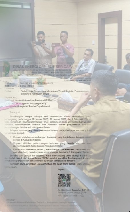 Dalam surat itu, Dinas ESDM Kaltim menjelaskan bahwa telah berlangsung aksi demonstrasi damai mahasiswa di Kota Samarinda pada 19 Januari 2026, 26 Januari 2026, dan 2 Februari 2026. Aksi tersebut menyampaikan aspirasi serta tuntutan terkait pelaksanaan kegiatan pertambangan batubara di Kabupaten Berau.
