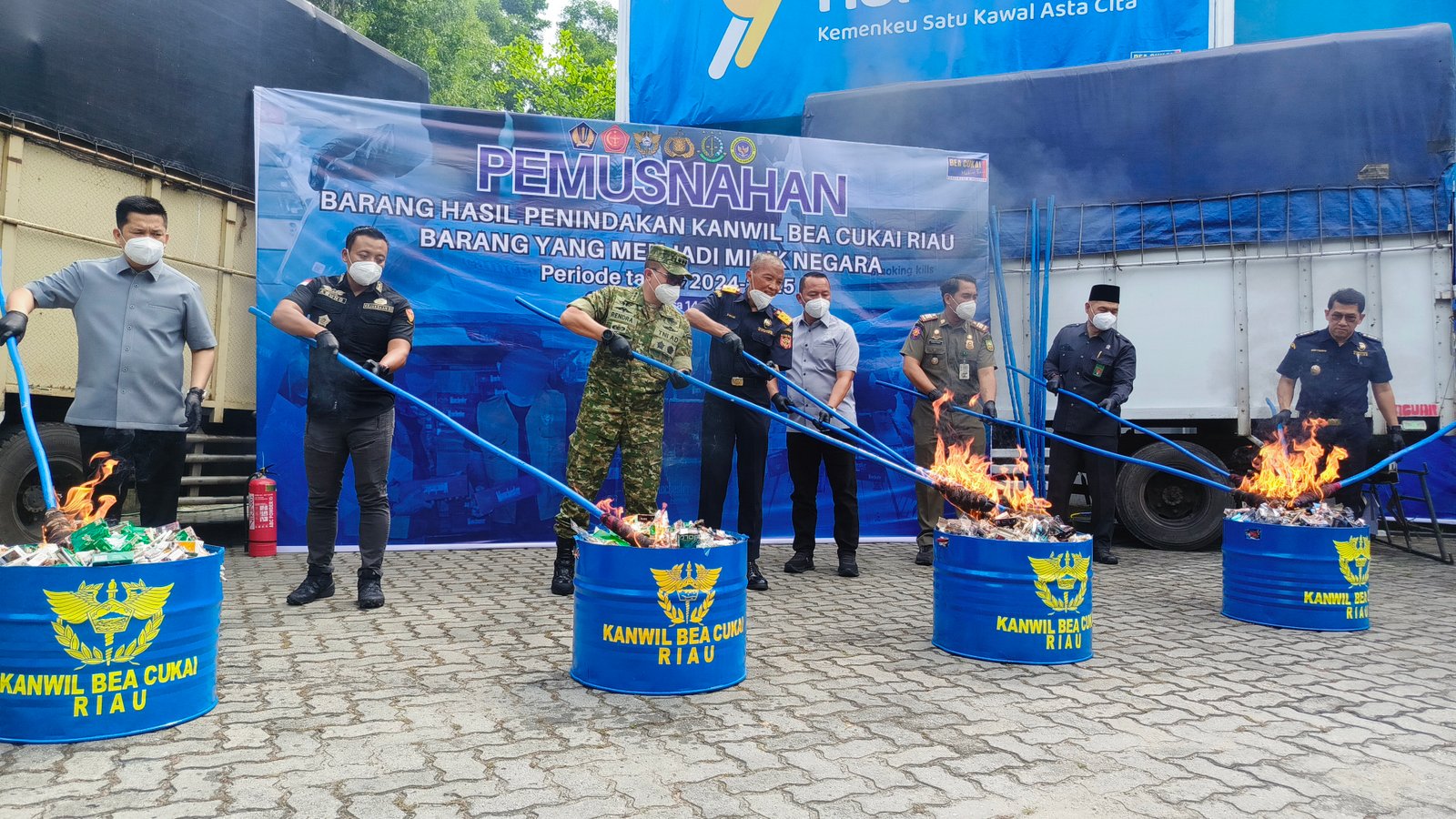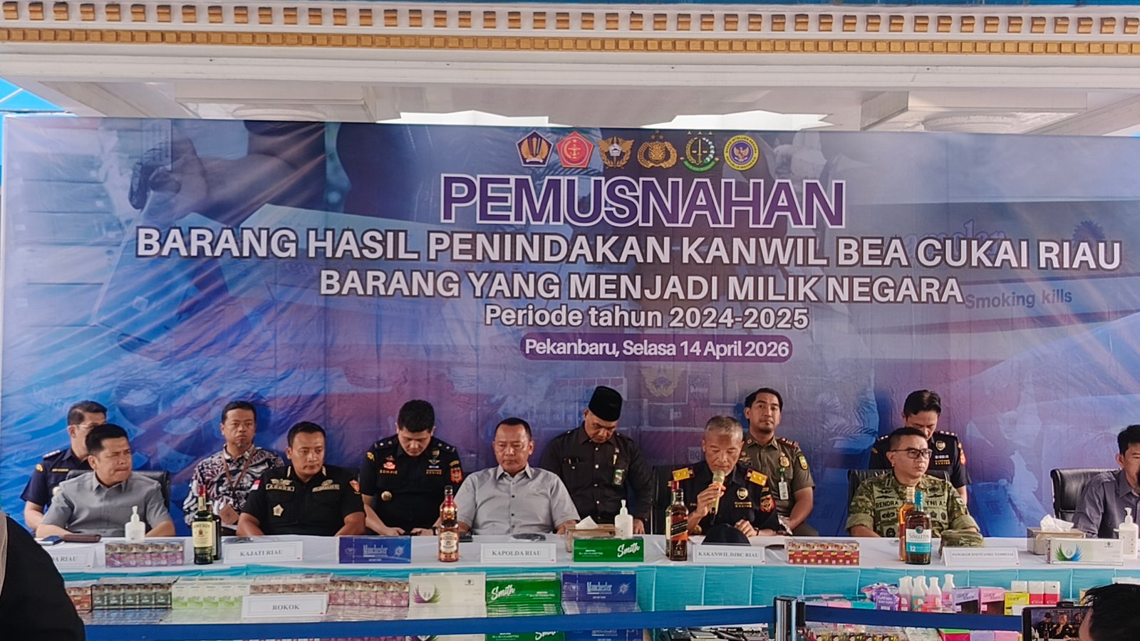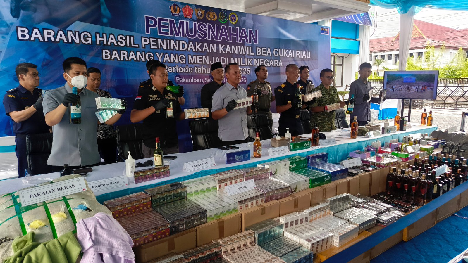 Acara pemusnahan ini turut disaksikan oleh berbagai unsur instansi terkait, termasuk jajaran pejabat Kementerian Keuangan wilayah Riau, Kejaksaan Tinggi, TNI, Kepolisian, serta lembaga pemerintah lainnya.