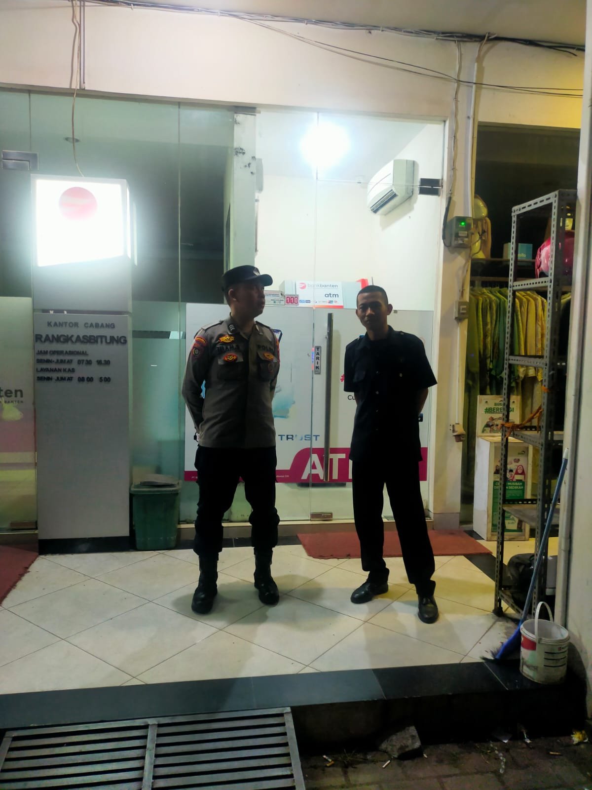 “Patroli dialogis dan kontrol ATM Bank Banten rutin dilaksanakan dalam rangka menjaga keamanan dan kewaspadaan di Wilayah Hukum Polsek Rangkasbitung, selanjutnya anggota patroli juga memberikan himbauan kepada Satpam Bank Banten.