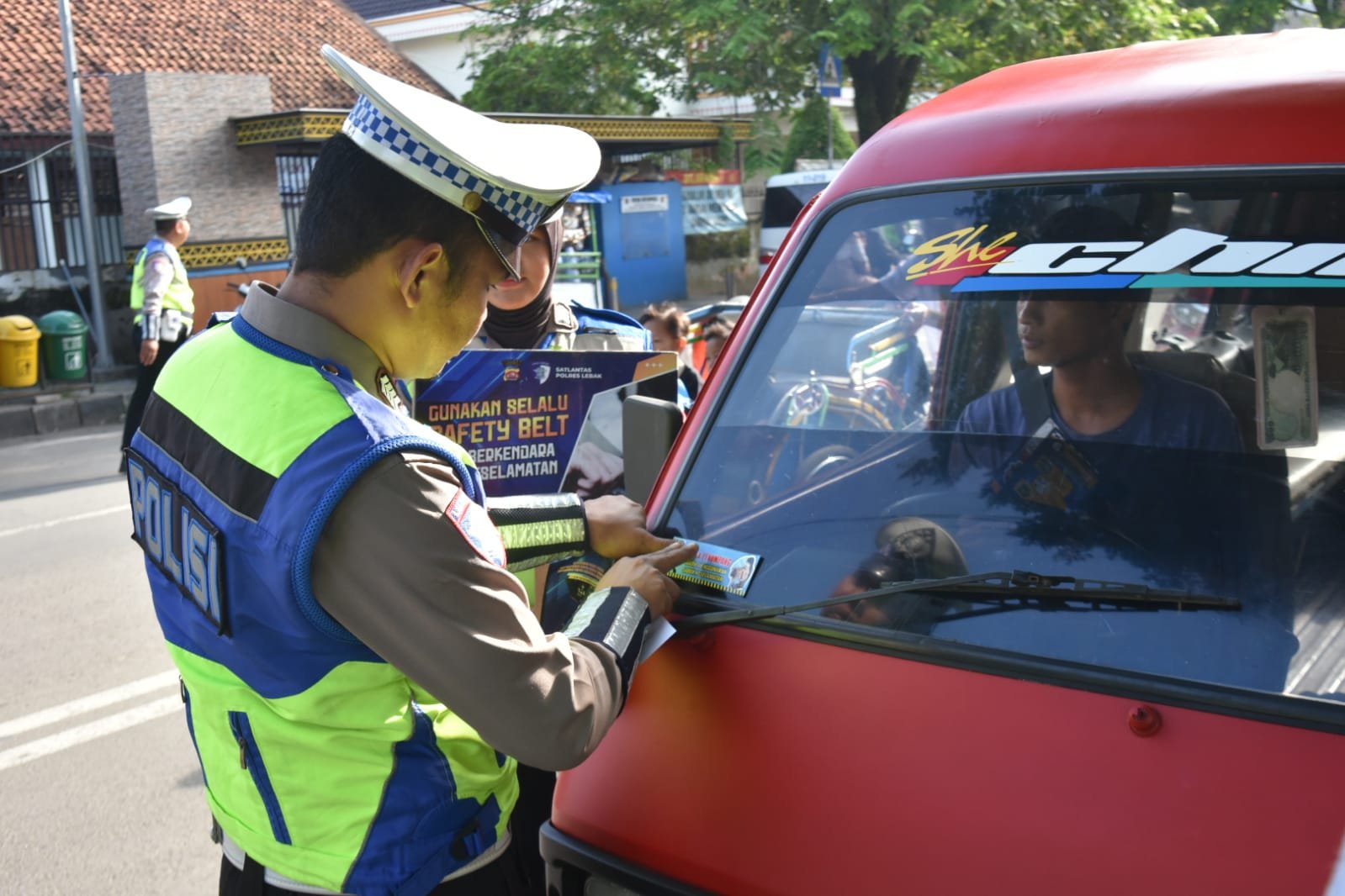 Pada kegiatan tersebut, personel Satuan Lalu Lintas Polres Lebak melaksanakan pembagian pamflet keselamatan berlalu lintas serta pemasangan stiker himbauan kepada para pengguna jalan di Jalan Ahmad Yani dan Jalan Sunan Kalijaga Rangkasbitung Kabupaten Lebak.