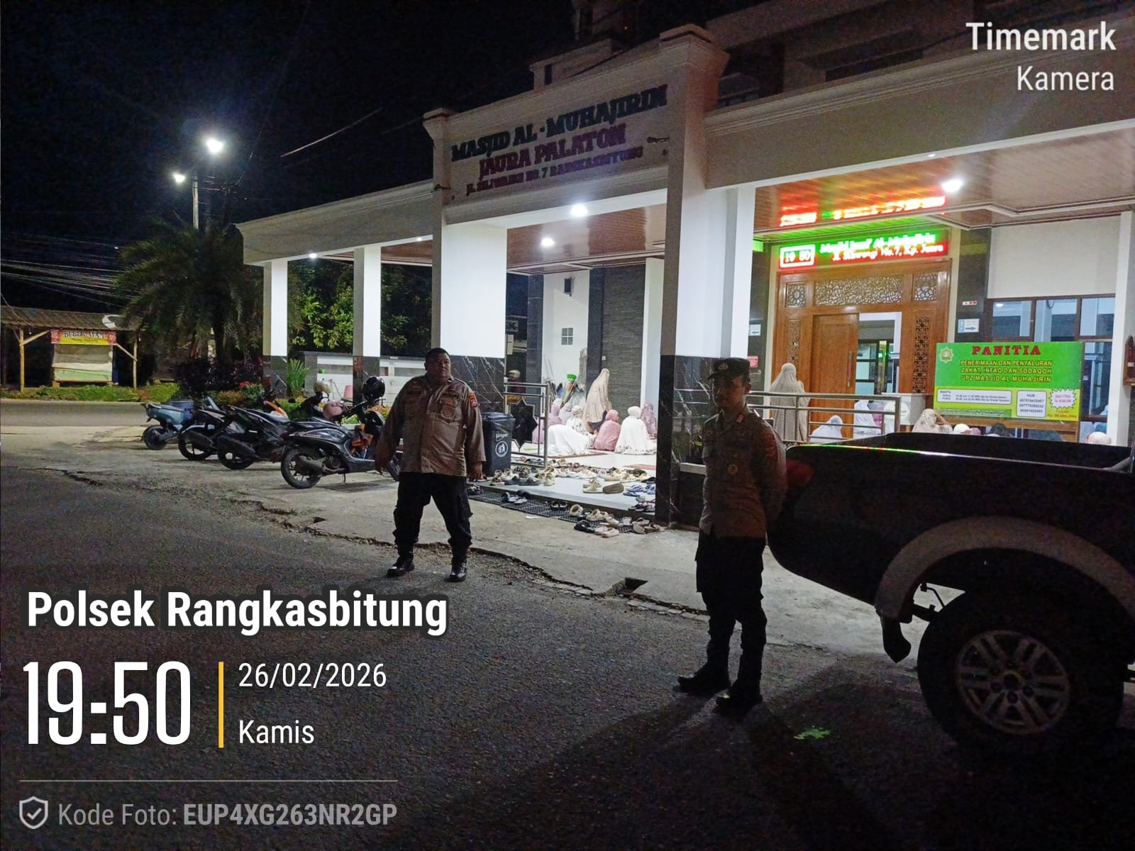 Personel Polsek Rangkasbitung melaksanakan patroli Harkamtibmas guna mengantisipasi tindak kriminalitas 3C (Curat, Curas, dan Curanmor) di Komplek Depag Masjid Al-Muhajirin .Kamis malam 26 Februari 2026, pukul 19.30 WIB.