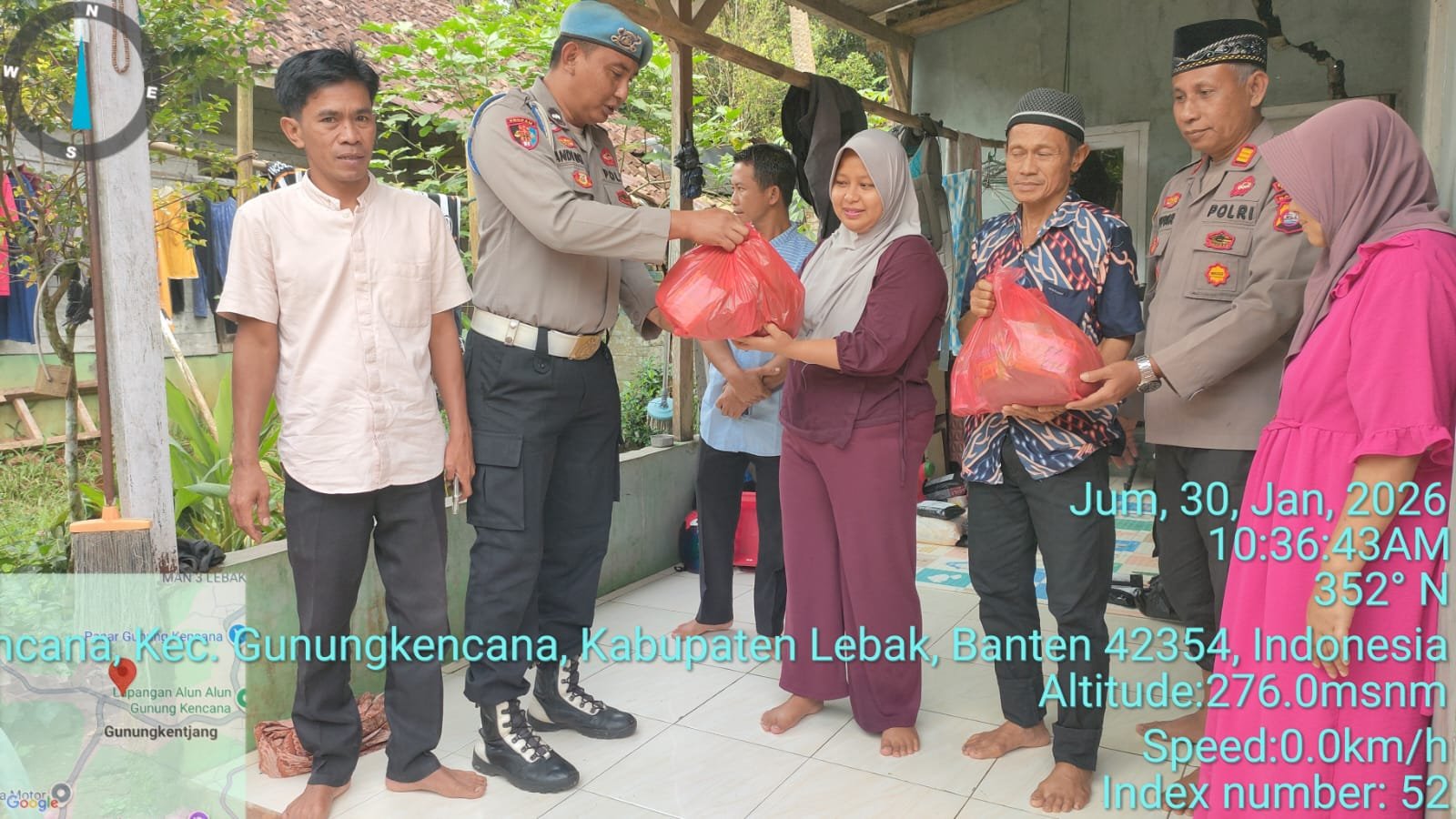 Kegiatan bakti sosial tersebut dilaksanakan pada hari ini, Jumat (30/01/2026), bertempat di Kampung Gunung Barat RT 02 RW 03, Desa Gunungkencana, Kecamatan Gunungkencana, Kabupaten Lebak, Provinsi Banten.