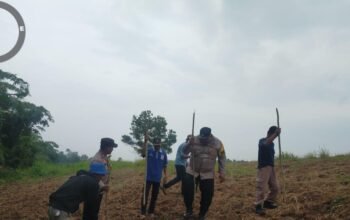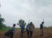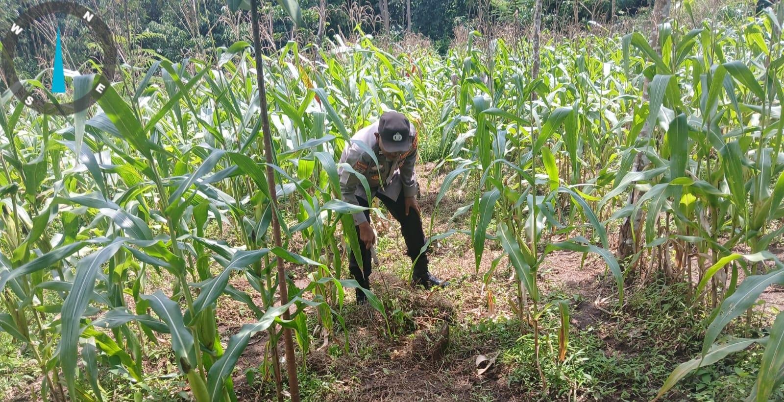 LiterasiAktual.com-Mendukung program Ketahanan Pangan,Kanit Binmas Polsek Rangkasbitung Polres Lebak AIPTU Heru Sasmito,bantu petani bersihkan rumput liar disekitaran pohon Jagung.