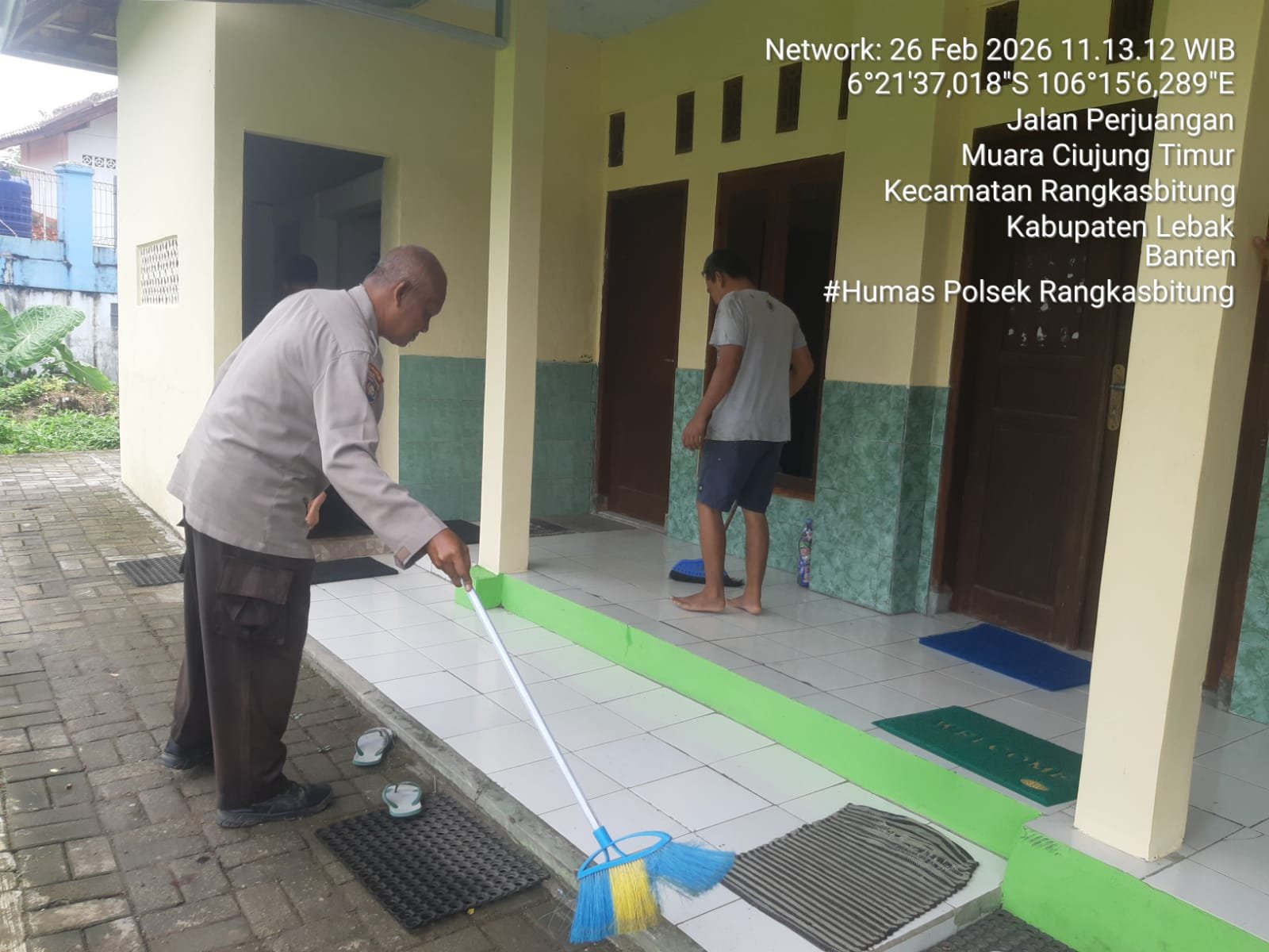 Bersih-bersih Mushola Al-Islah bersama pengurus Mushola yang baerada di Kampung Gedung Sepuluh,Kelurahan Muara Ciujung Timut,Kecamatan Rangkasbitung,Kabupaten Lebak.Kamis (26/02/2026).